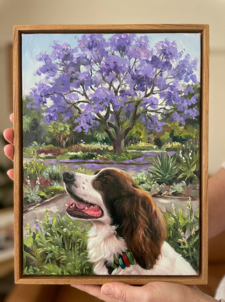 Get a hand painting of you pet with background scenery.